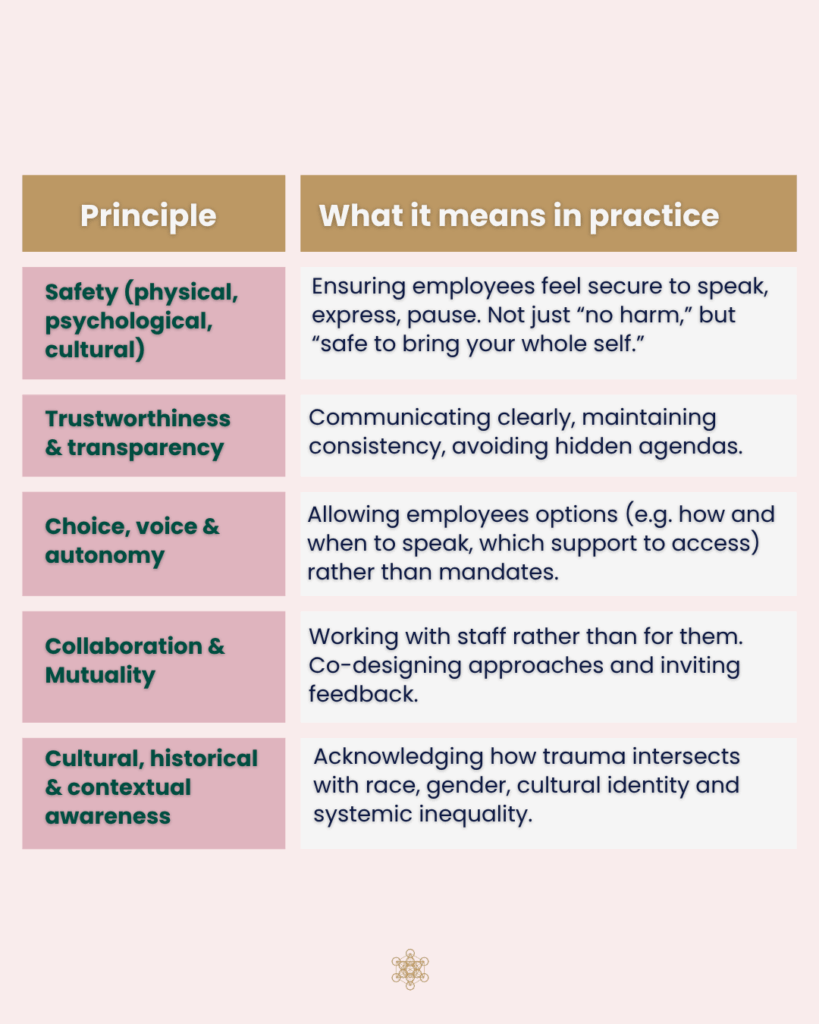 Managers can embed trauma-informed principles in their daily interactions: