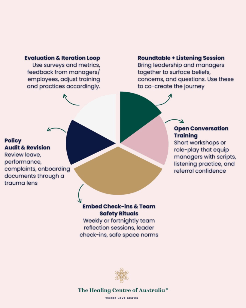 By shifting power, providing structure, and equipping managers with care (not clinical burden), organisations can move from well-intended rhetoric to trauma-informed practice.